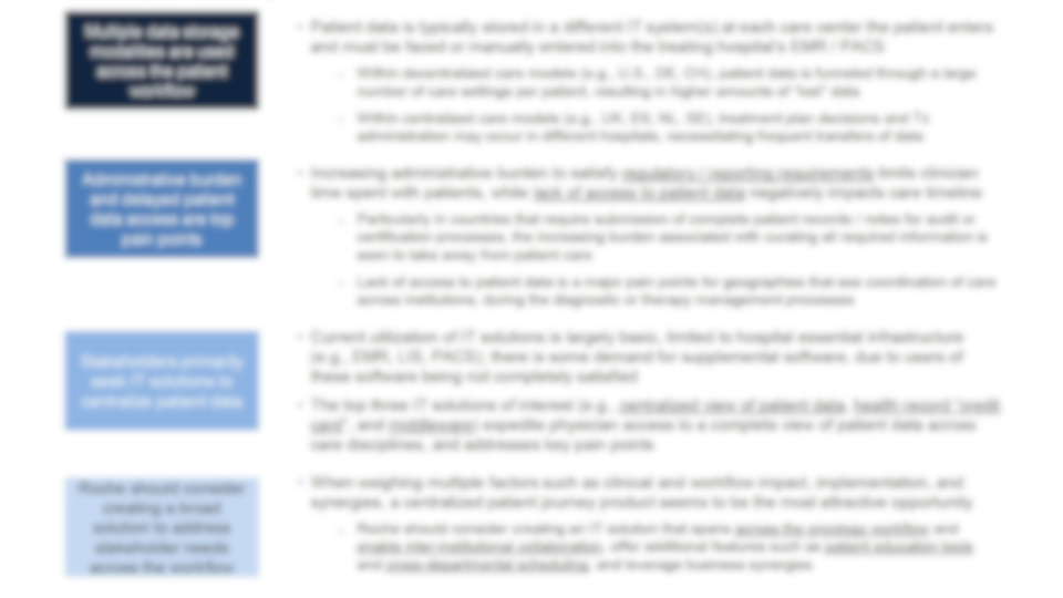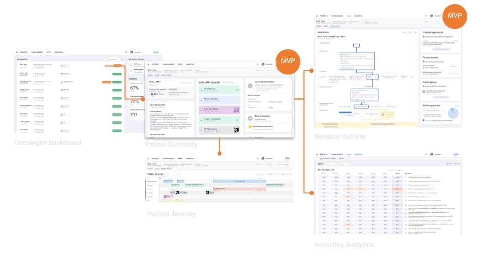 Through research with 90 providers across the US and EU, I reframed the product from a tumor-board extension to a longitudinal workflow platform, shaped MVP scope under technical constraints, secured executive alignment, and enabled funding for product development.