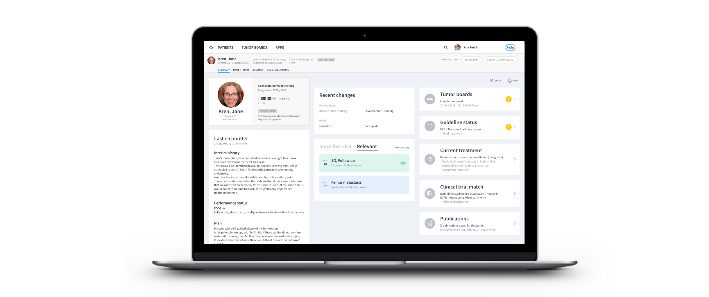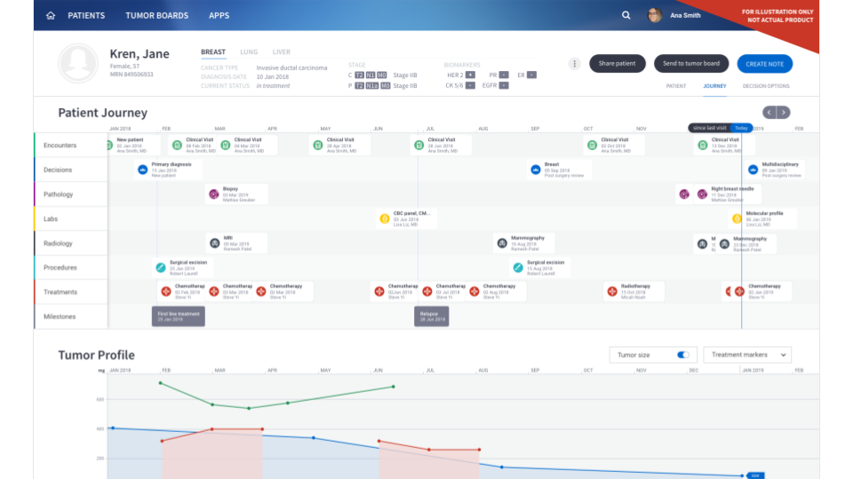 Oncology decision-making spans diagnosis, staging, treatment planning, monitoring, and collaboration across care teams. Yet these workflows are distributed across disconnected systems: EMRs, tumor boards, guideline databases, and clinical trial platforms. Clinicians must manually aggregate data before making high-stakes treatment decisions. The gap was workflow coherence.