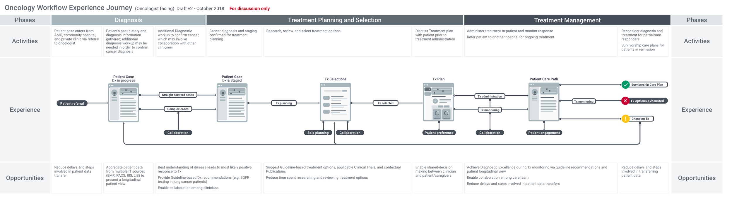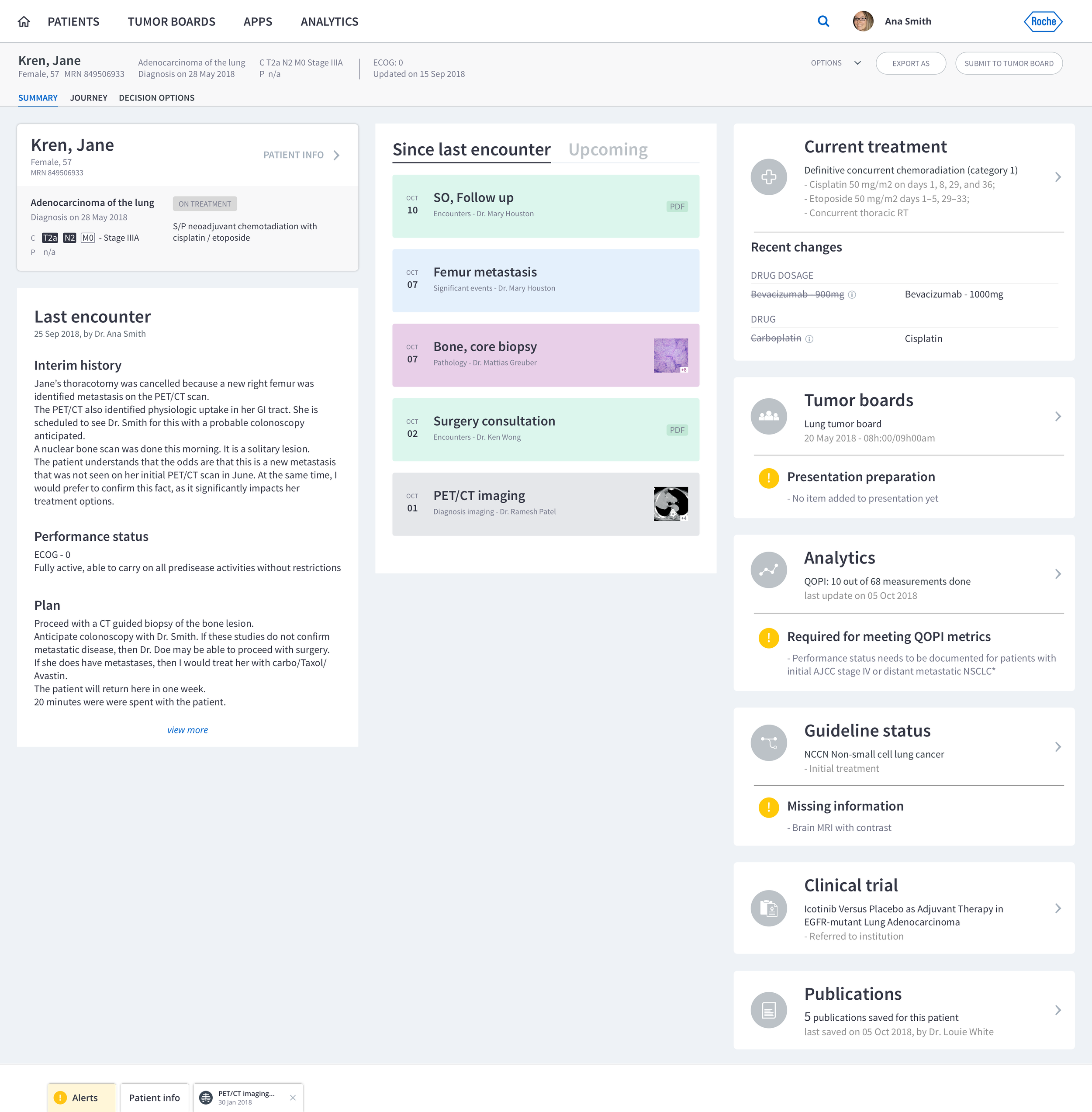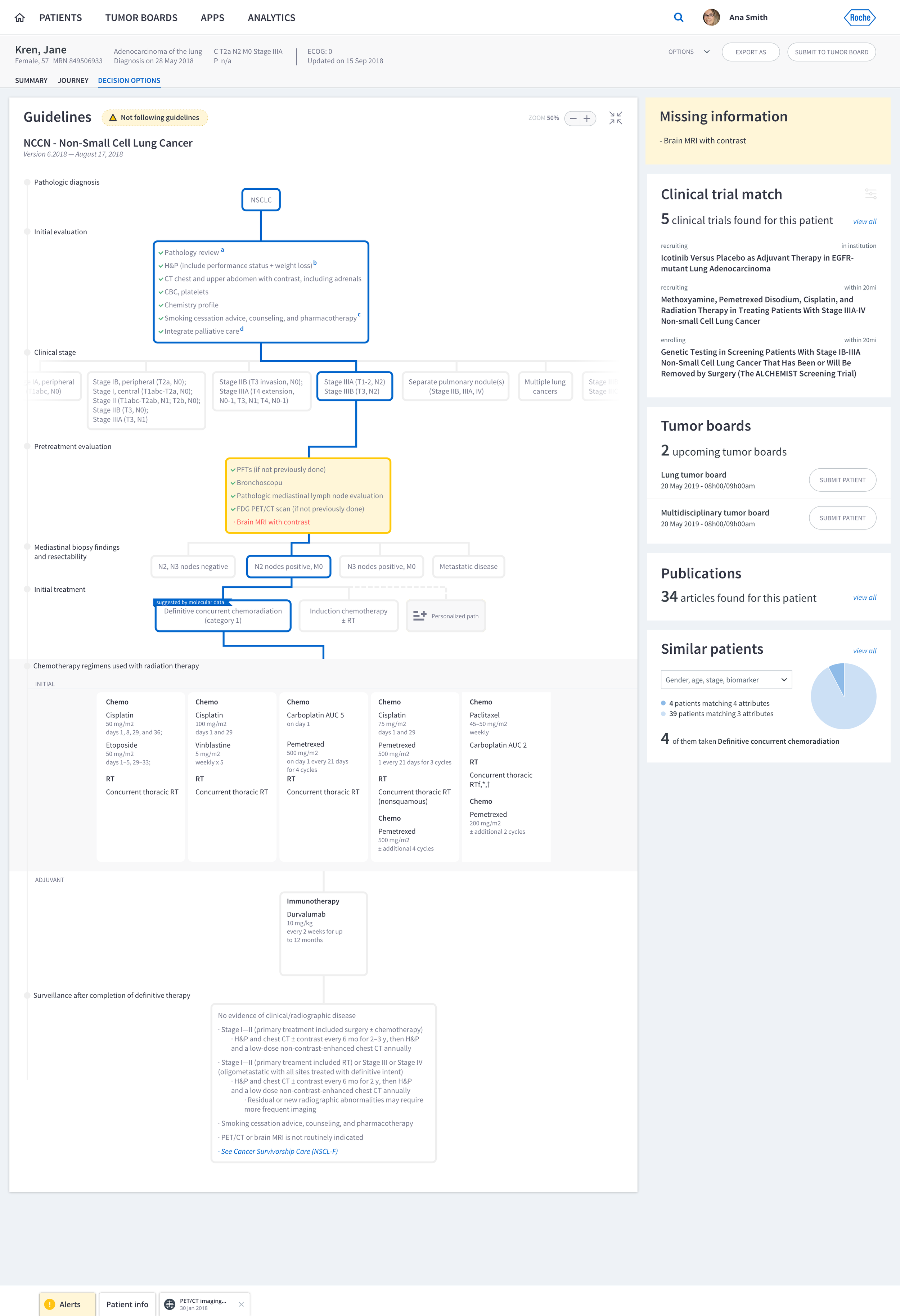 The concept defined the MVP scope and clarified NAVIFY’s expansion beyond tumor boards into longitudinal workflow support. The work secured executive approval and funding to begin product development and established a strategic foundation for integrating decision support capabilities across the NAVIFY portfolio. This initiative positioned NAVIFY not as a single-step tumor board tool, but as a platform supporting end-to-end oncology workflows.