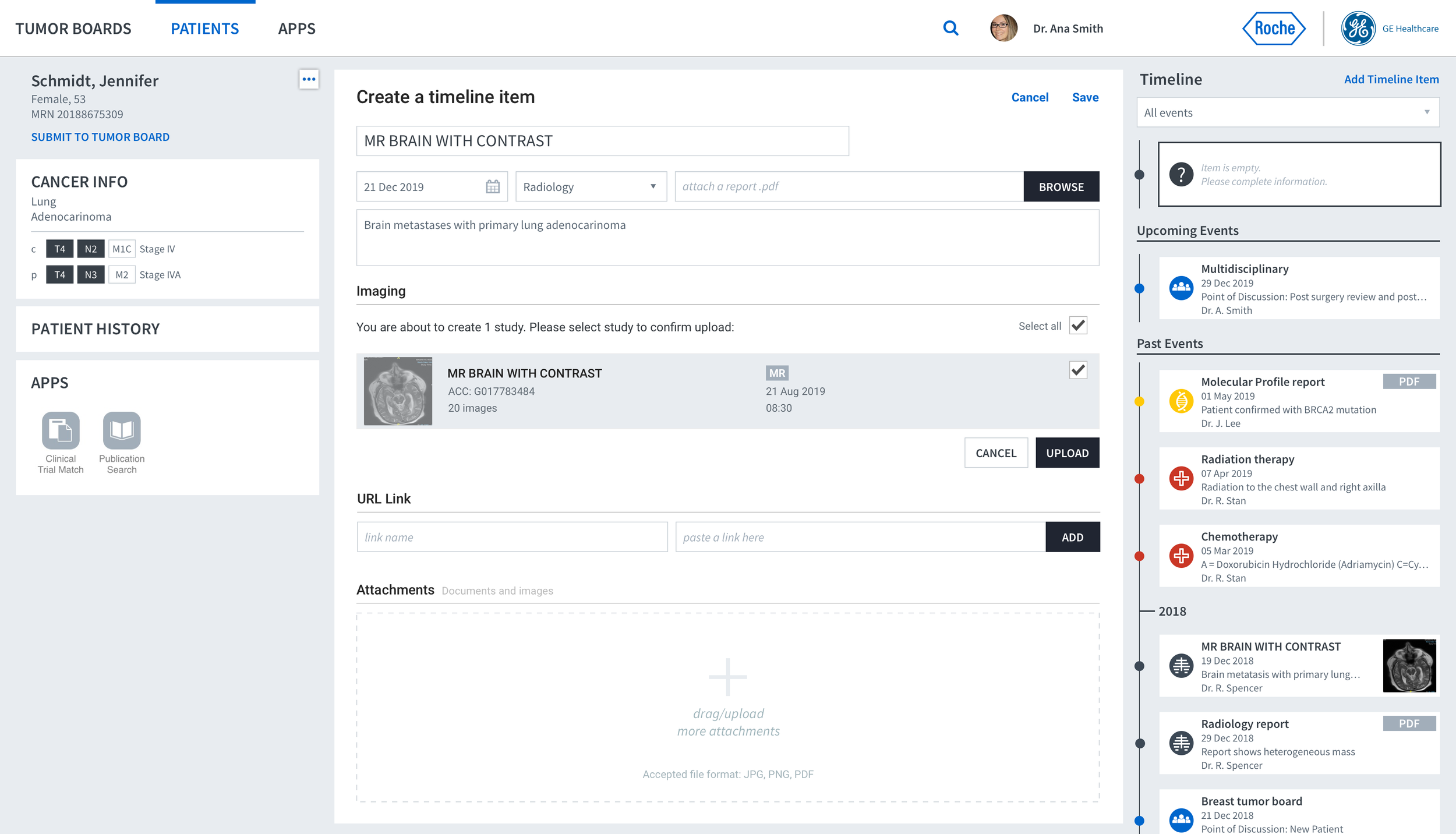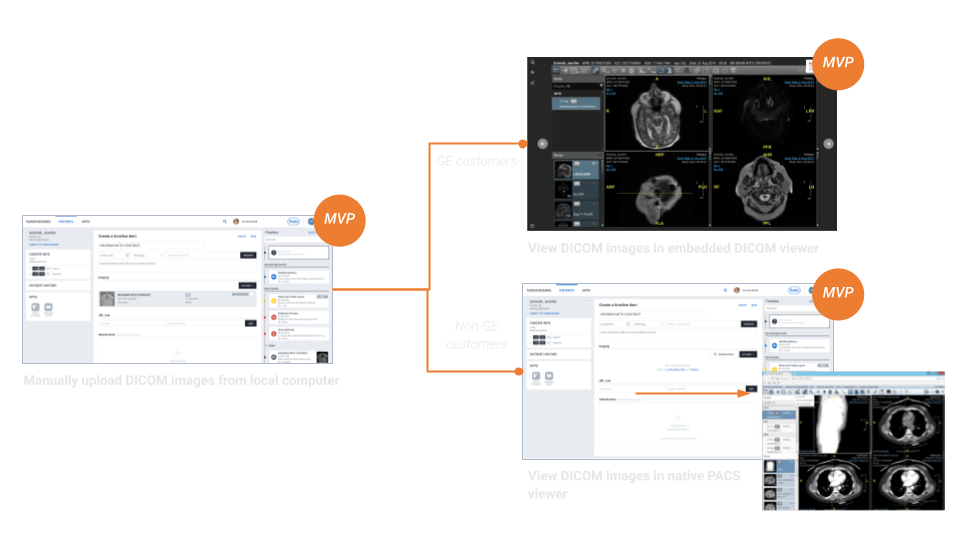 For GE customers, imaging was displayed through the embedded GE DICOM viewer. For non-GE customers, a controlled upload pathway ensured consistent functionality across institutions with varying PACS configurations.